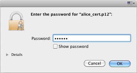 Wählen Sie nun die Zertifikatsdatei aus, die Sie zuvor aus Firefox exportiert haben und geben Sie das Passwort ein.