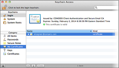 Das Zertifikat wird nun installiert und kann unter Kategorie > Meine Zertifikate eingesehen werden. Sobald die Installation abgeschlossen wurde, können Nachrichten über Mac Mail bzw. Appple Mail signiert und/oder verschlüsselt werden.