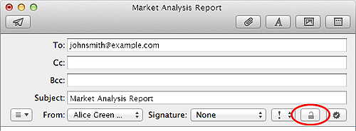 Um die Nachricht zu verschlüsseln, klicken Sie auf das Schloss-Symbol, welches im gleichen Fenster angezeigt wird.